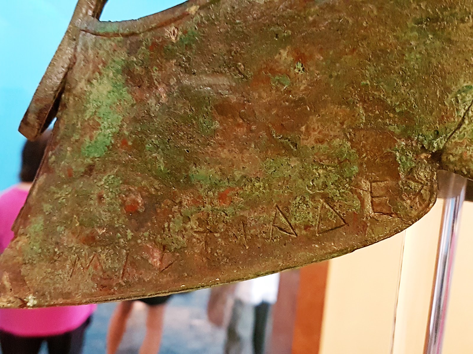 24. How were Miltiades the General (Strategos) and Callimachus the War Archon (Polemarch) so important to the Athenian victory at Marathon? (6.109-114) [Miltiades Helmet Dedication at Olympia: ΜΙΛΤΙΑΔΕΣ ΑΝΕΘΕΚΕΝ ΤΟΙ ΔΙΙ (Miltiades dedicated to Zeus)]